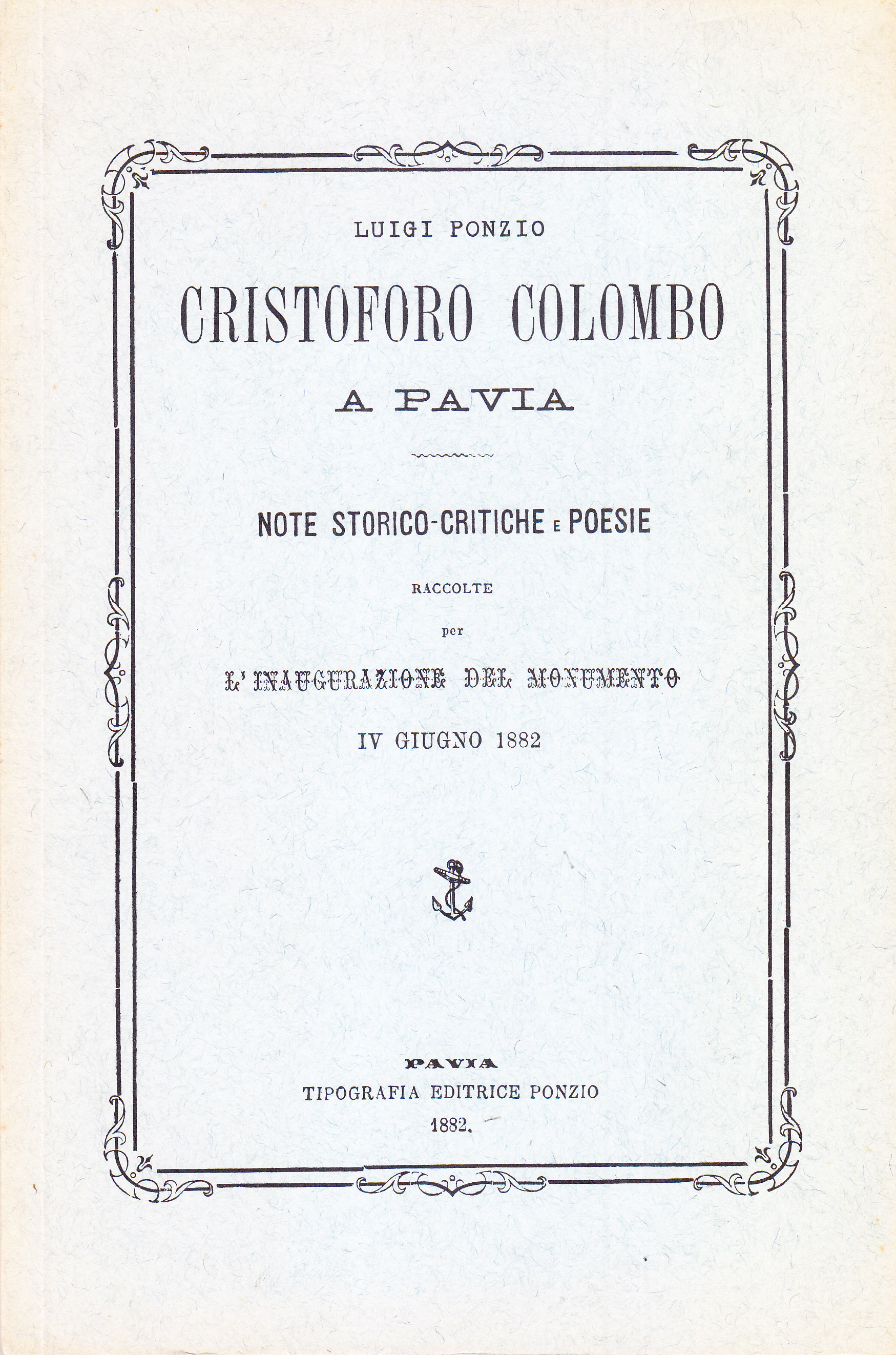 TITOLO/DENOMINAZIONE: Cristoforo Colombo a Pavia. Note storico-critiche e poesie raccolte per l'inaugurazione del monumento. IV giugno 1882