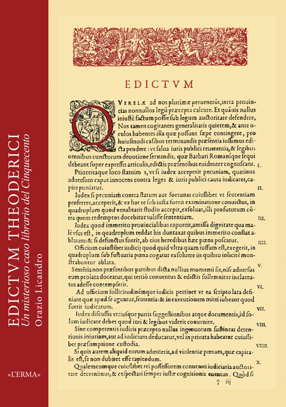 Questo piccolo libro aggiunge così, a quelle già sedimentatesi, una nuova ipotesi sul cosiddetto Edictum Theoderici e ne rimette a disposizione il testo per future ricerche.