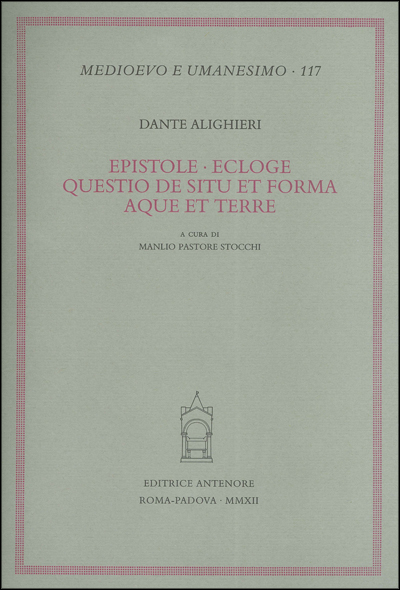 Il volume raccoglie e compatta il frutto di anni di ricerche e studi spesi dall'illustre studioso padovano intorno a tre opere cosiddette "minori" di Dante: Epistole, Ecloghe, Questio de aqua et terra, che egli propone di rititolare come: Questio de forma et situ aque et terre. Il curatore ha inteso dare a questa sua fatica un carattere di essenzialità, senza mai mancare di approfondire e innovare. Una Prefazione al volume ne presenta l'architettura e spiega i parametri secondo cui sono organizzati i materiali ora a stampa; specifiche Note introduttive vengono dedicate poi alle singole opere. Vengono quindi i testi, in latino con traduzione italiana a fronte (e per le Ecloghe anche le due di Giovanni del Virgilio, cui Dante risponde). Dei testi latini non sono approntate nuove edizioni critiche: sono invece recuperate le più accreditate edizioni attualmente in circolazione, riviste però dal curatore, che – ove ritiene necessario – si discosta dalla lezione precedente, proponendo (e discutendo nel commento) la propria. Ogni opera è quindi accompagnata da un ampio commento al piede che, senza riuscire sovrabbondante, offre al lettore tutti i conforti per una migliore comprensione e fruizione dei testi. L'edizione è completata dagli indispensabili indici finali. Un volume importante, che si inserisce nell'àmbito delle celebrazioni dantesche e vuole recare un contributo alla lettura e alla diffusione dell'opera dell'«altissimo poeta».