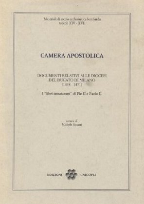 Si tratta dell'edizione di un particolare genere di fonte di documentaria prodotta dalla Camera Apostolica: i "libri annatarum", che contengono obbligazioni e note di restituzione relativa all'annata, ossia una tassa cui erano soggetti i detentori di benefici ecclesiatici. Sono stati presi in considerazione i documenti concernenti le diocesi appartenenti al ducato di Milano; l'arco cronologico esaminato è quello del pontificato di Pio II e Paolo II (1458-1471).