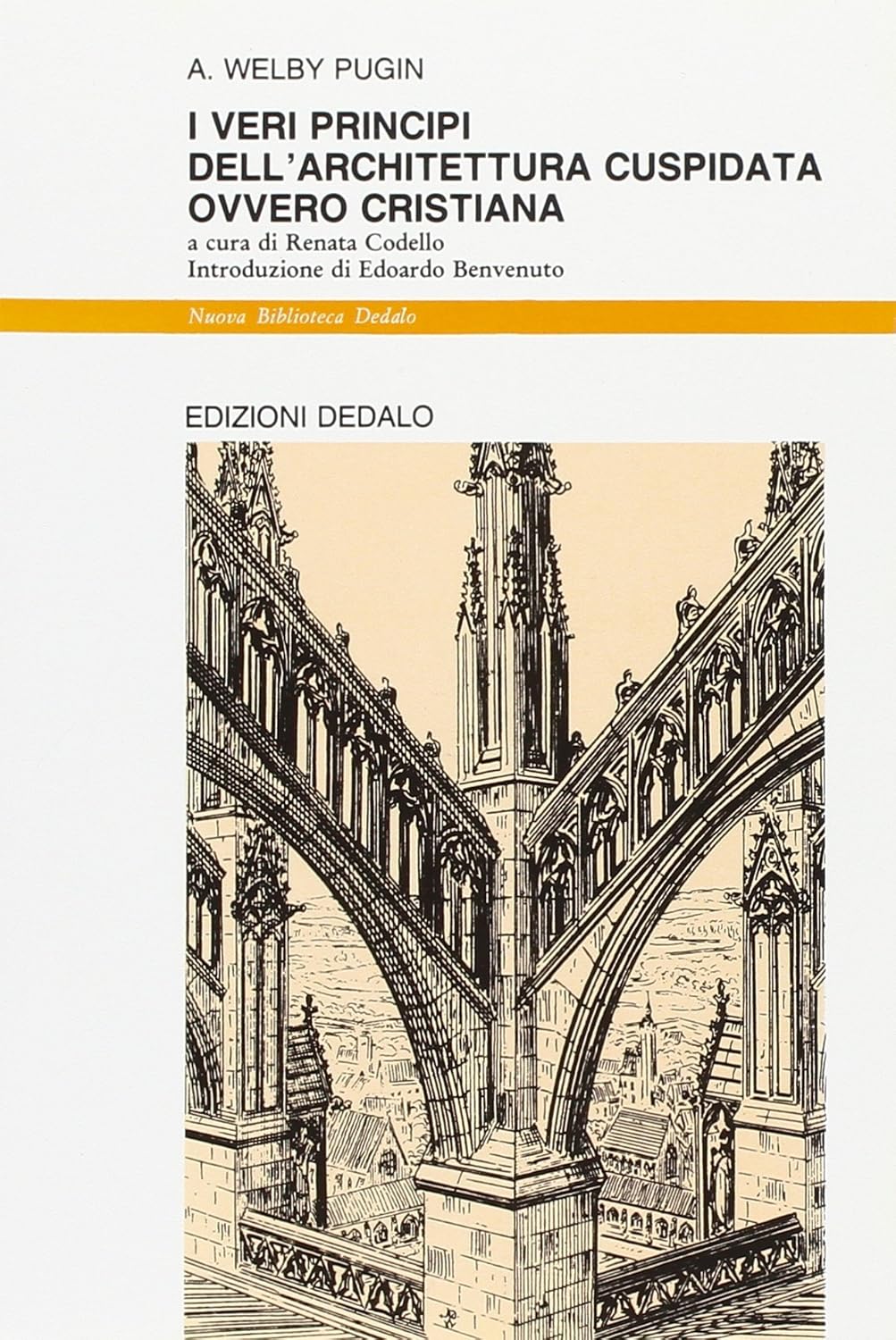 In questo libro, presentato per la prima volta in edizione italiana, l'Autore espone con chiarezza - e talvolta con notevole profondità critica, slancio polemico e forza persuasiva - quei fondamentali principi della sua teoria architettonica che, a partire da una rilettura storica del Gotico in chiave quasi misticamente esaltata e nazionalistica, ebbero grande influenza sull'intero panorama contemporaneo: sulla teoria, la critica, la progettazione, la didattica e sulla problematica del restauro e del rapporto storico con l'antico. In tal senso, sia Ruskin che Morris o Viollet-Le-Duc, gli sono in qualche modo debitori. D'altra parte, Pugin non propone affatto una ripresa del Gotico in termini meramente stilistici (che anzi critica severamente), ma un autentico Revival nel senso di una sorta di rinascita "per immersione" di quei valori etici che ne costituirono il fondamento estetico. Riproporre questo testo basilare del Gothic Revival appare significativo e quasi provocatorio, quando il riferimento attualmente imperante è al classico e generalmente si considerano definitivamente conclusi e non più praticabili non solo l'esperienza storica del Gotico, ma anche il suo sistema di valori e le stesse dimensioni teoriche che questi conferiscono all'architettura. Come scrive Edoardo Benvenuto nella sua penetrante introduzione al libro, Pugin potrebbe essere quel "terzo uomo" che, protetto dall'incolmabile distanza storica, ci consenta di volgere, secondo un processo che richiama Paul Ricœur, "i suoi Veri Principi in metafora viva".