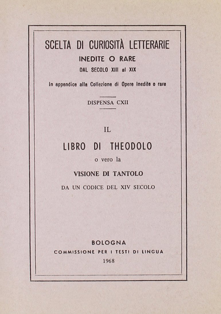 Testo tratto da un codice del XIV secolo della Biblioteca capitolare di Verona, che illustra una delle fonti della "Divina commedia" di Dante, ossia la visione dell'Inferno, del Purgatorio e del Paradiso avuta dall'anima del cavaliere Tantolo.