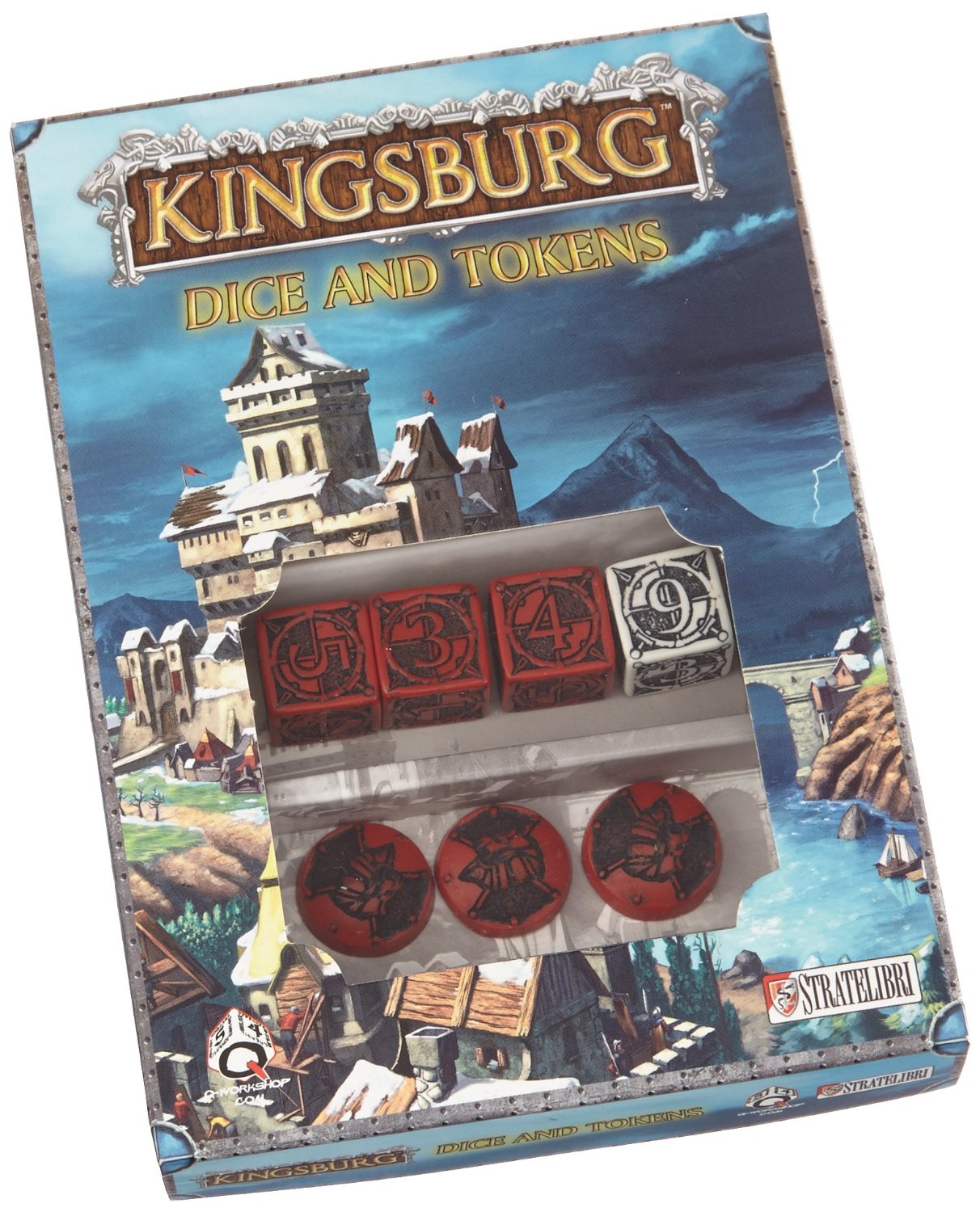 Grazie alla partnership con la società polacca Q-workshop, produttore di dadi ben noto a livello internazionale e con la più grande collezione di dadi al mondo, sono disponibili i set di dadi per il gioco da tavolo Kingsburg.