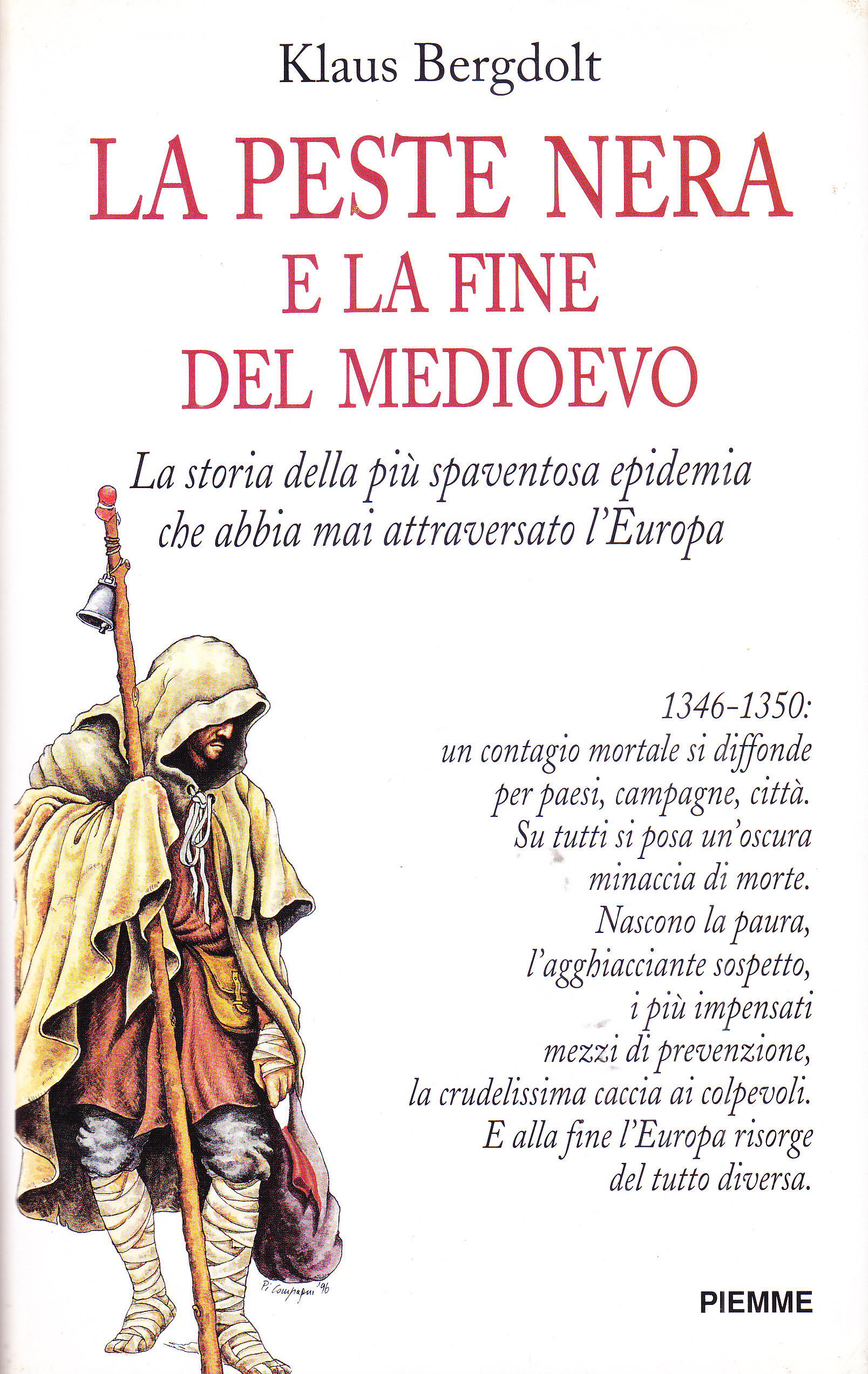 Da Tucidide a Lucrezio, da Virgilio a Boccaccio, da Manzoni fino a Camus, la comparsa della peste ha sempre costituito un tema di estremo interesse. Di tutte le epidemie, quella del 1346-1350 è la più terribile che la storia ricordi, e non a caso, contrassegnata con lo stesso colore della morte, è ricordata come "la peste nera". Un terzo della popolazione europea ne rimase vittima. Su ogni cosa si proiettava l'ombra lunga della morte, i sospetti si insinuavano tra gli stessi membri familiari, all'improvviso si scatenavano selvagge cacce ai colpevoli, di cui gli ebrei furono spesso le prime e più numerose vittime. Alla fine, dopo cinque lunghissimi anni, l'Europa non era più la stessa. La peste portava con sé, ultima eccellente vittima, anche quella serenità e quella fiducia della coscienza che aveva reso possibile un'epoca quale il Medioevo.
