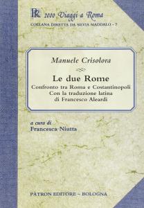 Primavera del 1411. Manuele Crisolora, ambasciatore dell'imperatore bizantino presso il papa, giunge a Roma. È folgorato dallo splendore della città, dove tutto parla dell'antica potenza. Le strade brulicano di pellegrini che parlano le lingue più diverse, ora sono la potenza e la ricchezza - non solo spirituale - della Chiesa che si manifestano a Roma e nel mondo. Ma soprattutto l'occhio nostalgico di Manuele è attratto dai segni (iscrizioni, opere d'arte) dell'antica comunanza fra Greci e Romani. E dalla somiglianza fra Roma e Costantinopoli, che di Roma è figlia, il fine dello scritto, dissimulato nel confronto fra le due città, è un appello implicito alla madre per la salvezza della figlia, minacciata dai Turchi. Le due Rome è percorso da un senso di precarietà che assume quasi la forma di un presagio: «anche le città muoiono». Costantinopoli cadde nel 1453. L'anno dopo Francesco Aleardi tradusse il testo in latino.