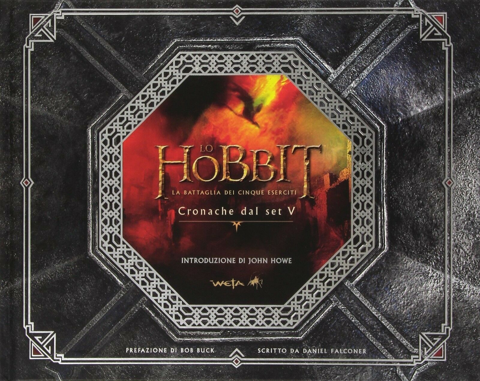 Scoprite come è stata architettata la battaglia per la Montagna Solitaria, come sono stati ideati i suoi eserciti e plasmati i suoi paesaggi attraverso i resoconti e i commenti dei membri dei team creativi da premio Oscar di 3Foot7, Weta Digital e Weta Workshop. Dalla Città del Lago a Dol Guldur, fino a Dale e a Collecorvo, ogni sezione è riccamente illustrata con disegni di creature, costumi, armature, oggetti di scena e ambienti selezionati dagli stessi artisti all'interno dell'immenso tesoro di opere d'arte generate per il film. Scritto da Daniel Falconer, senior concept designer, con prefazione del costumista Bob Buck e introduzione del concept art director nonché leggendario artista tolkeniano John Howe, questo quinto volume della serie "Lo Hobbit: Cronache dal set" è stato realizzato in stretta collaborazione con i principali componenti del team creativo della produzione, in modo da garantire un complemento al film più completo e fedele possibile.