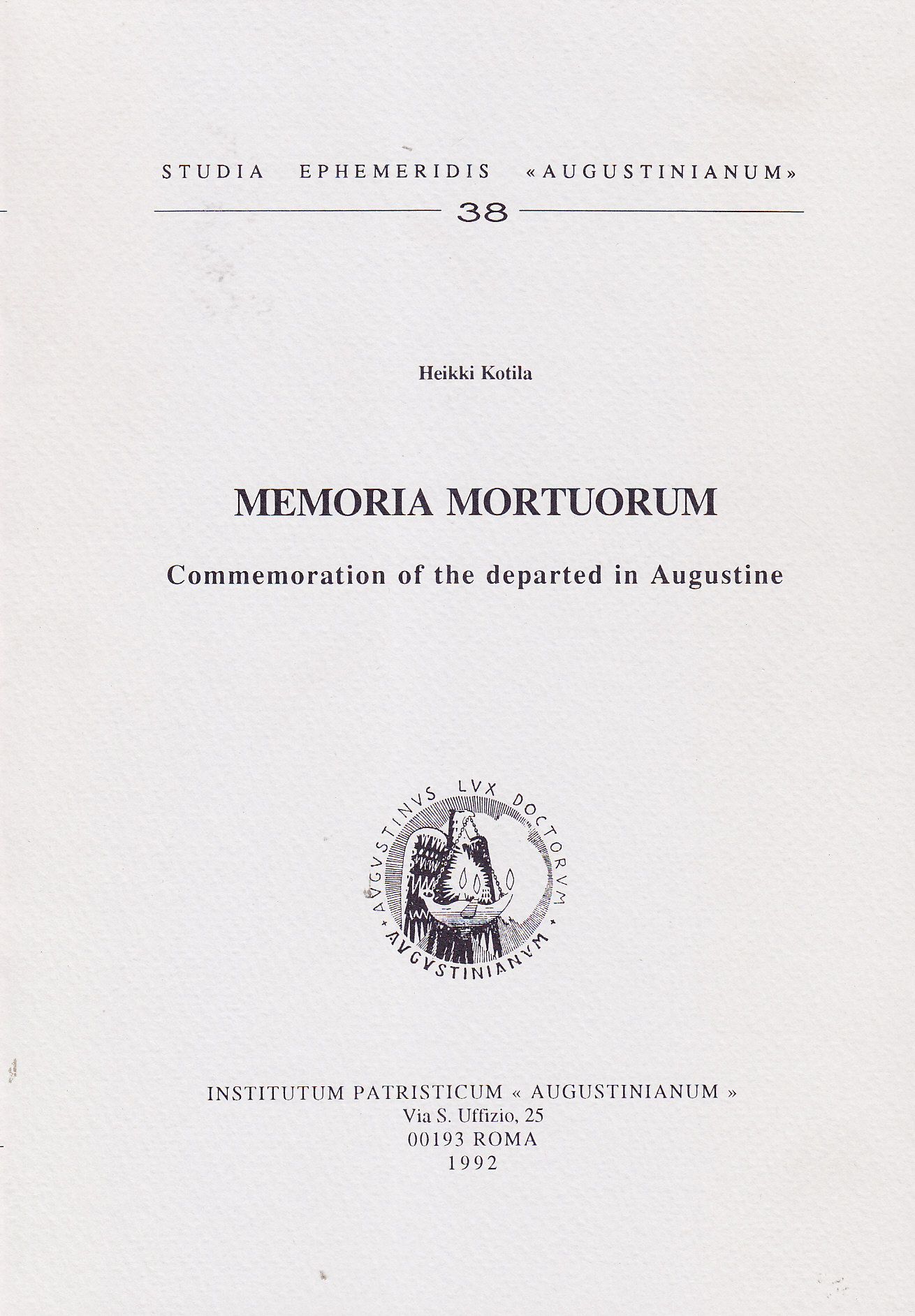Memoria mortuorum. Commemoration of the departed in Augustine