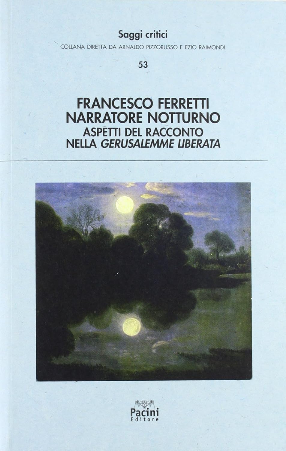 I filologi alessandrini miravano a "spiegare Omero con Omero". Questo libro prova a "spiegare Tasso con Tasso". Facendo dialogare teoria e prassi, ma privilegiando la prassi, il saggio rivitalizza gli aspetti aristotelici del poema: verosomiglianza, composizione, nodo, scioglimento, agnizione, peripezia, perturbazione, energia, etc. Emerge il profilo di un racconto che, mentre elude le forme del romanzo cavalleresco, inventa un universo narrativo completamente nuovo, fondato sulla rappresentazione misteriosa e notturna degli affetti e del mondo interiore.