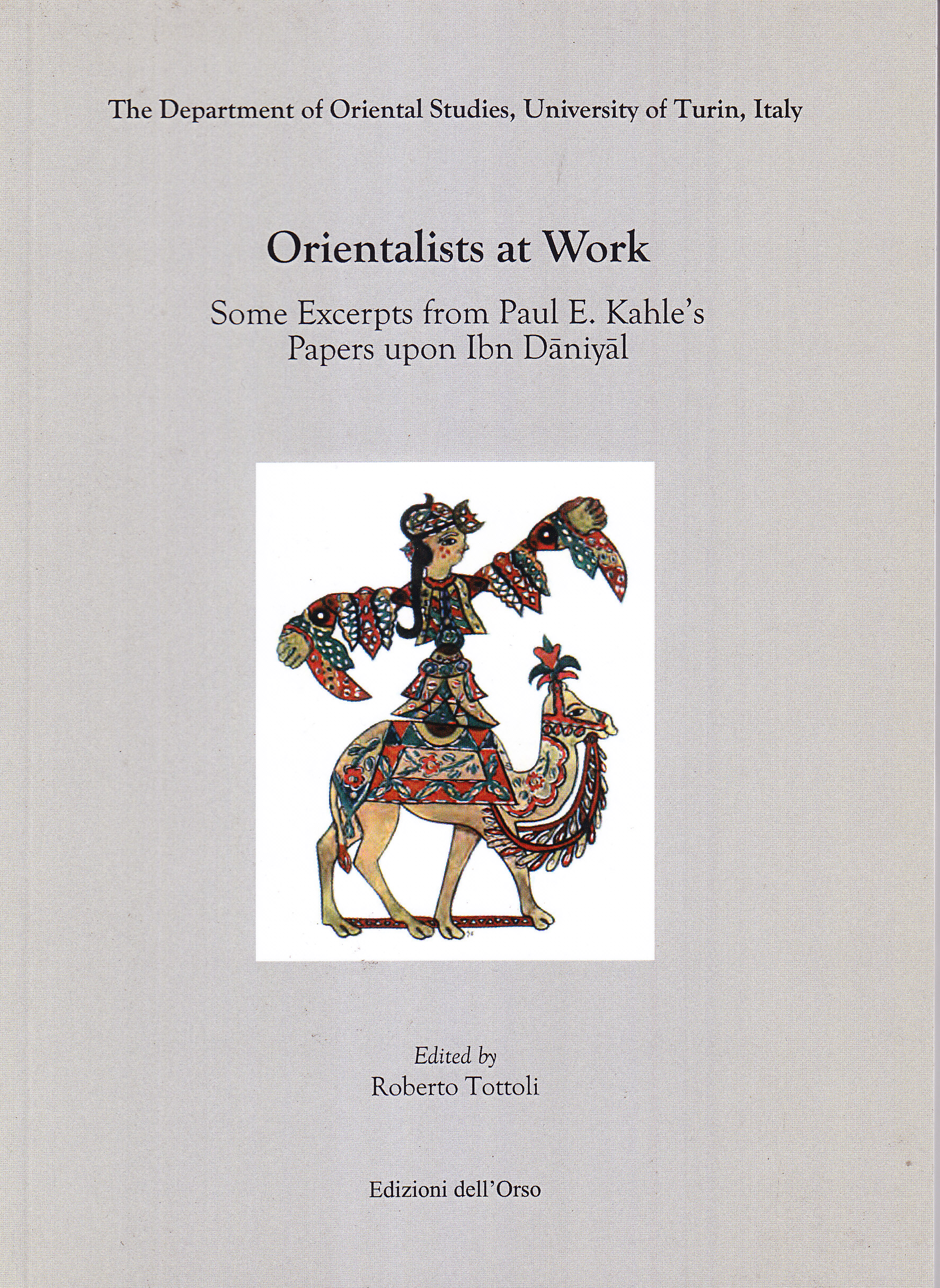 The samples reproduced in this volume refer to Paul E. Kahle's studies on the shadow plays of Muḥammad Ibn Dāniyāl whose text he had intended to prepare for a critical edition in the years before the Second World War.