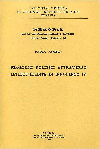 Problemi politici attraverso lettere inedite di Innocenzo IV