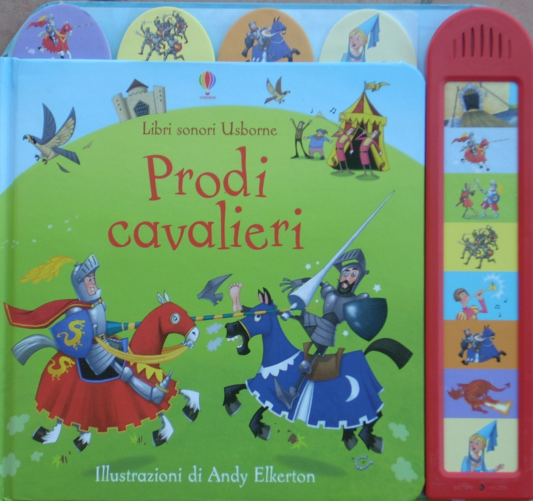 Destrieri al galoppo, spade che s'incrociano e un drago ruggente che minaccia una donzella… Premendo i tasti sonori si potrà seguire il prode cavaliere nelle sue… rumorose avventure!