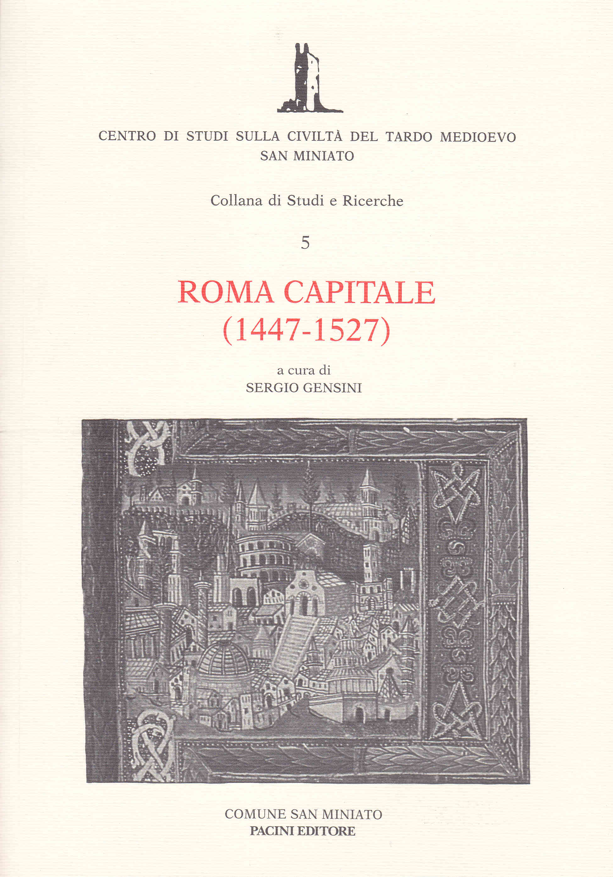 "Il volume raccoglie i contributi presentati durante il consueto, biennale incontro fra storici di varie scuole italiane e straniere, promosso dal Centro di Studi sulla Civiltà del Tardo Medioevo di San Miniato, svoltosi dal 27 al 31 ottobre 1992 (il quarto, nell'ordine). Emergono, attraverso i singoli contributi dei vari autori - tra cui Michele Cassandro, Vincenzo De Caprio, Giorgio Chittolini, Andrea Sohn, Pierre Hurtubise -, varie immagini di Roma: sede del papato; capitale dello Stato pontificio con i suoi rapporti politici, diplomatici, militari, finanziari, ecc.; fulcro di attività culturali ed artisti che che esporta i propri modelli anche fuori d'Italia."