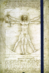 Rubrica telefonica tascabile con riproduzione dell'Uomo Vitruviano di Leonardo da Vinci (1490 circa, Gallerie dell'Accademia, Venezia)