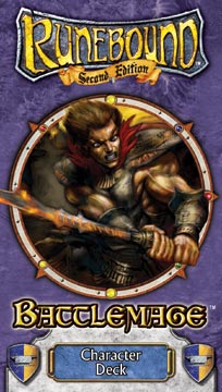 The Battlemage character deck introduces new mechanics and rules for character advancement and interaction. Add the abilities of a Battlemage to any character you may choose for Runebound and expand your powers and abilities, or mix your Battlemage character deck with any of the five others available to produce your own, completely unique hero!