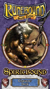 The Spiritbound character deck introduces new mechanics and rules for character advancement and interaction. Add the abilities of a Spiritbound to any character you may choose for Runebound and expand your powers and abilities, or mix your Spiritbound character deck with any of the five others available to produce your own, completely unique hero!