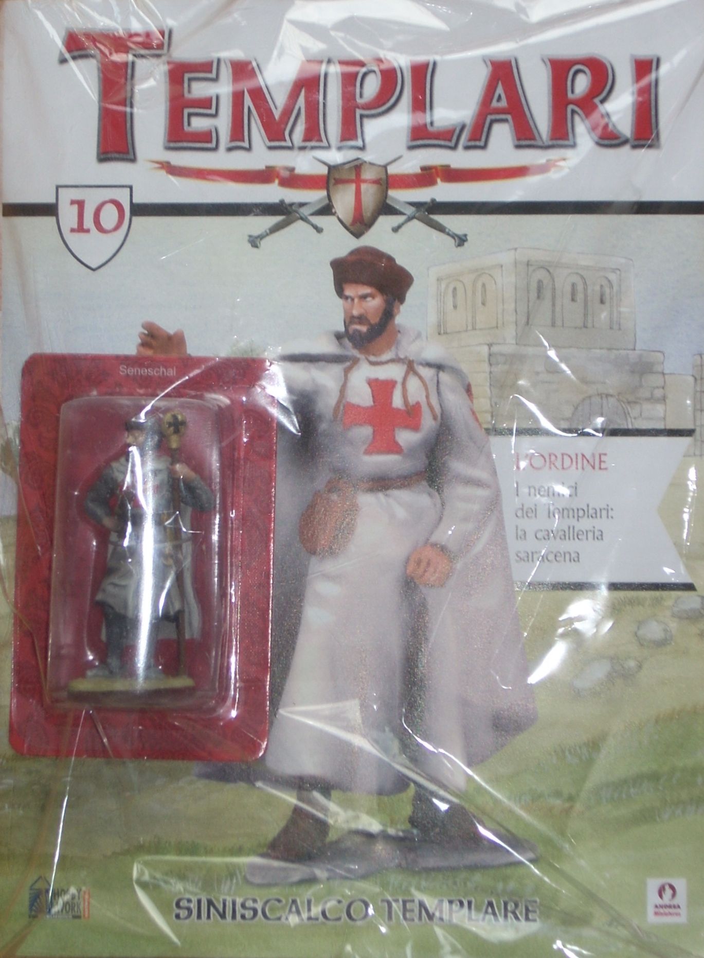 Realizzate in metallo e alte circa 65 mm. Rappresentano i Cavalieri templari e lacuni fra i più influenti protagonisti delle crociate tra il XII e il XIV secolo. Sono finemente eseguite e dipinte interamente a mano. Questa scala ha permesso di raggiungere un risultato finale caratterizzato da estremo realismo e accuratezza. Le magnifiche miniature sono opera di Andrea Miniatures, uno dei migliori produttori di figurini tridimensionali, garanzia di qualità per il mondo dei modellisti. Nei primi tre numero saranno presentati un cavaliere templare, Ugo di Payns (primo Gran Maestro dell'Ordine) e Saladino, il fondatore della dinastia degli Ayyubidi che nel 1187 cacciò i crociati cristiani da Gerusalemme.