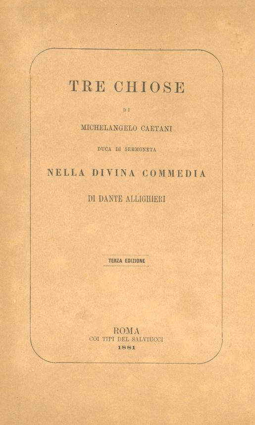 3° chiosa: Di una più precisa dichiarazione intorno ad un passo della Divina Commedia di Dante allighieri nel XVII canto del Paradiso proposta agli amici di questi studi da Michelangelo Caetani.