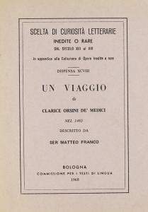 Descrizione di uno dei molti viaggi compiuti da Clarice Orsini (Roma, 1453 circa – Firenze, 30 luglio 1488), nobildonna italiana, famosa soprattutto per essere stata la moglie di Lorenzo il Magnifico e la madre di Papa Leone X.