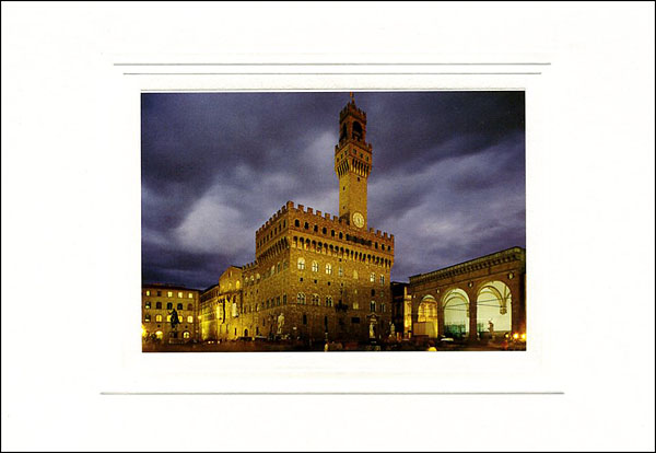 Biglietto con busta, con riproduzione di Palazzo Vecchio, Firenze.