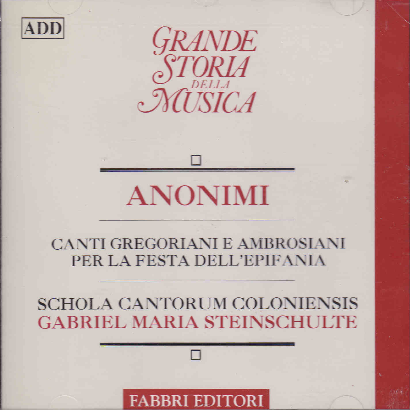 Canti gregoriani e ambrosiani per la festa dell'Epifania - CD