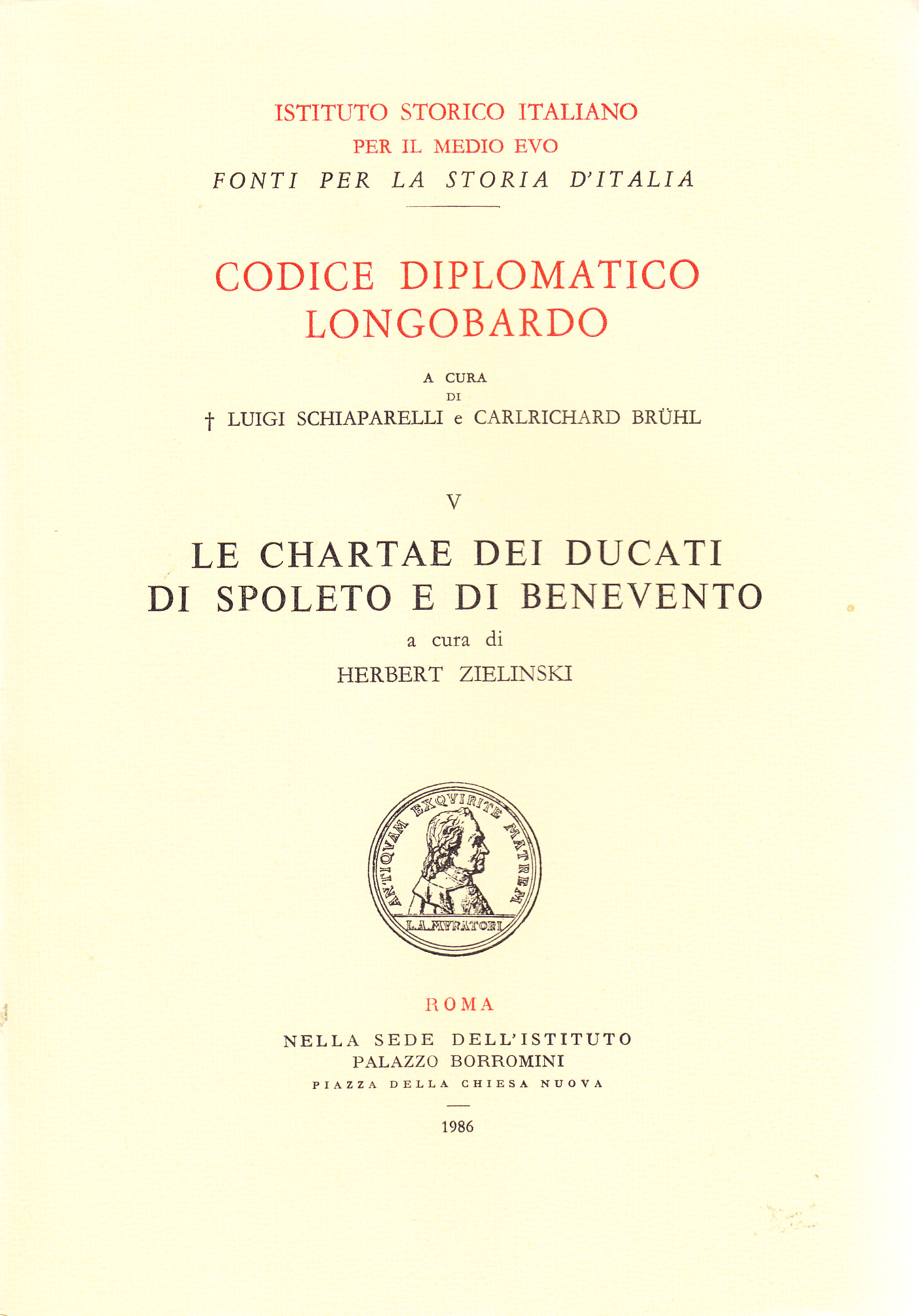 Codice diplomatico Longobardo V. Le chartae dei ducati di Spoleto e di Benevento