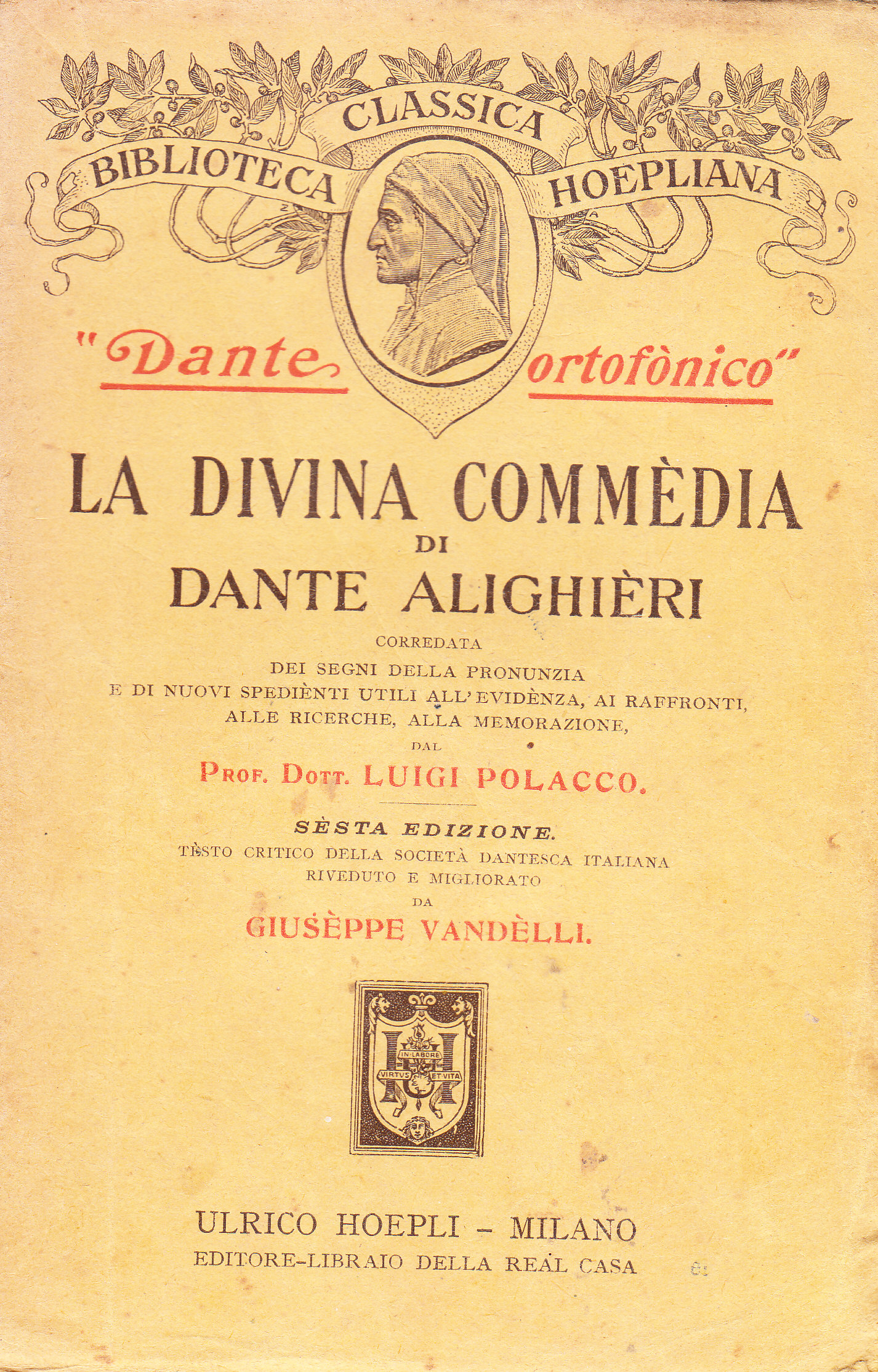 TITOLO/DENOMINAZIONE: "Dante ortofonico". La Divina Commedia di Dante Alighieri corredata dei segni della pronunzia e di nuovi spedienti utili all'evidenza, ai raffronti, alle ricerche, alla memorazione