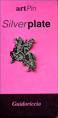 Spilletta in metallo con riproduzione ispirata all'affresco "Guidoriccio da Fogliano all'assedio di Montemassi", di Simone Martini (Palazzo Pubblico, Sala del Mappamondo, Siena 1329)