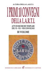Le prime ricerche sull’Ordine dei Cavalieri Templari in Italia sono iniziate nei primi anni ’80 a seguito dell’impulso della L.A.R.T.I., Libera Associazione Ricercatori Templari Italiani e dei suoi iscritti che hanno condiviso, con spirito pionieristico, il comune obiettivo di far conoscere il ritrovamento delle mansioni templari in Italia e l’animo cavalleresco della loro missione, attraverso ricerche archeologiche e d’archivio. Questa terza raccolta di Atti riunisce le relazioni presentate al 6° Convegno (San Marino - 1988), al 7° Convegno (Ascoli Piceno - 1989) e all’8° Convegno (Sermoneta - LT - 1990). Fra i vari argomenti trattati: il Processo di Parigi; le Case del Tempio di Fidenza; I Templari e le decime ecclesiastiche; le due pergamene inedite della “Domus de Murello” in Piemonte; I Templari nella Marittima; i rapporti tra Templari e Giovanniti; le origini ed i misteri dei Templari; i Santuari Mariani dell’Ordine del Tempio in Catalunja.