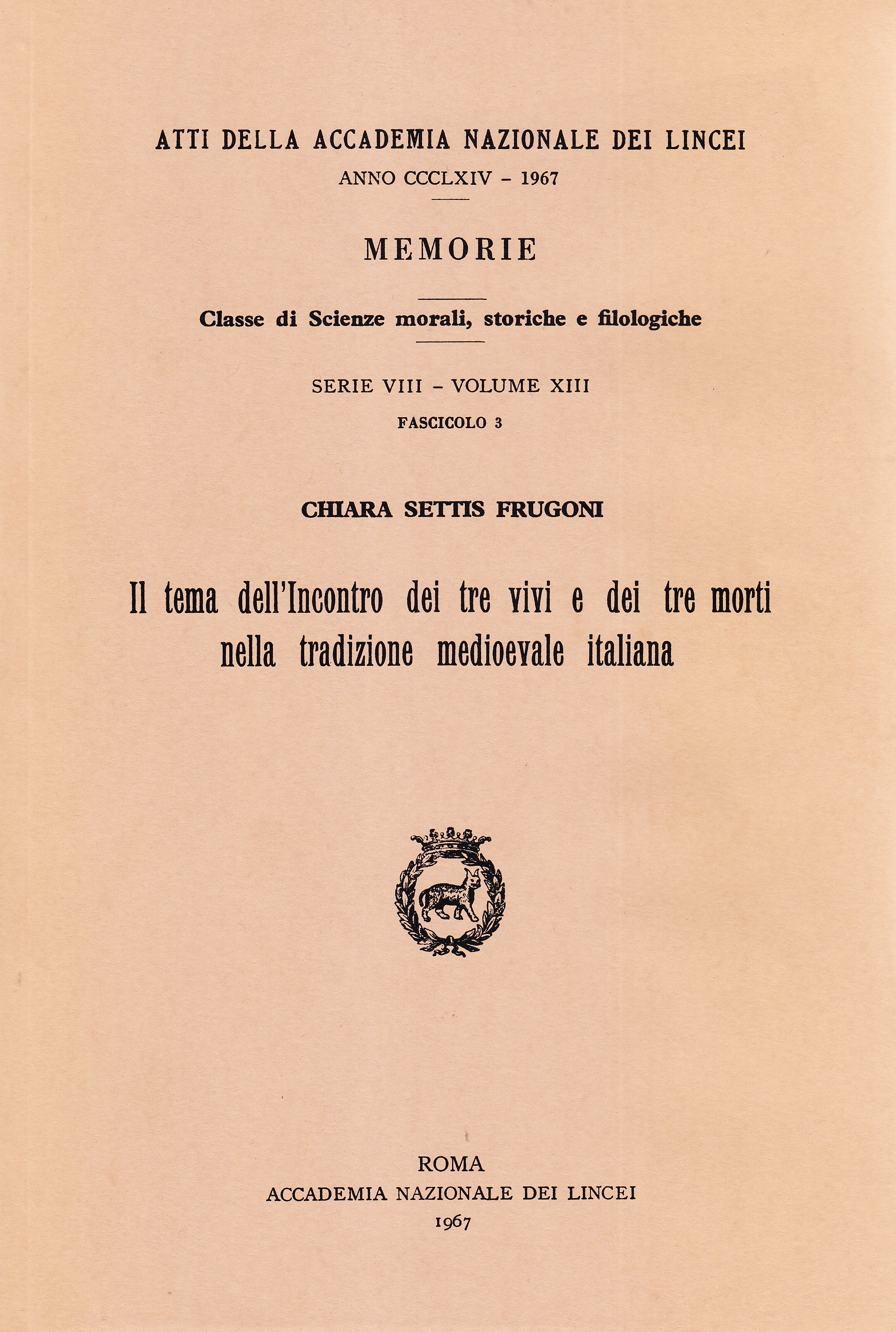 COLLANA/SERIE: Memorie. Classe di Scienze Morali Storiche e Filologiche, Serie VIII-Volume XIII-Fascicolo 3