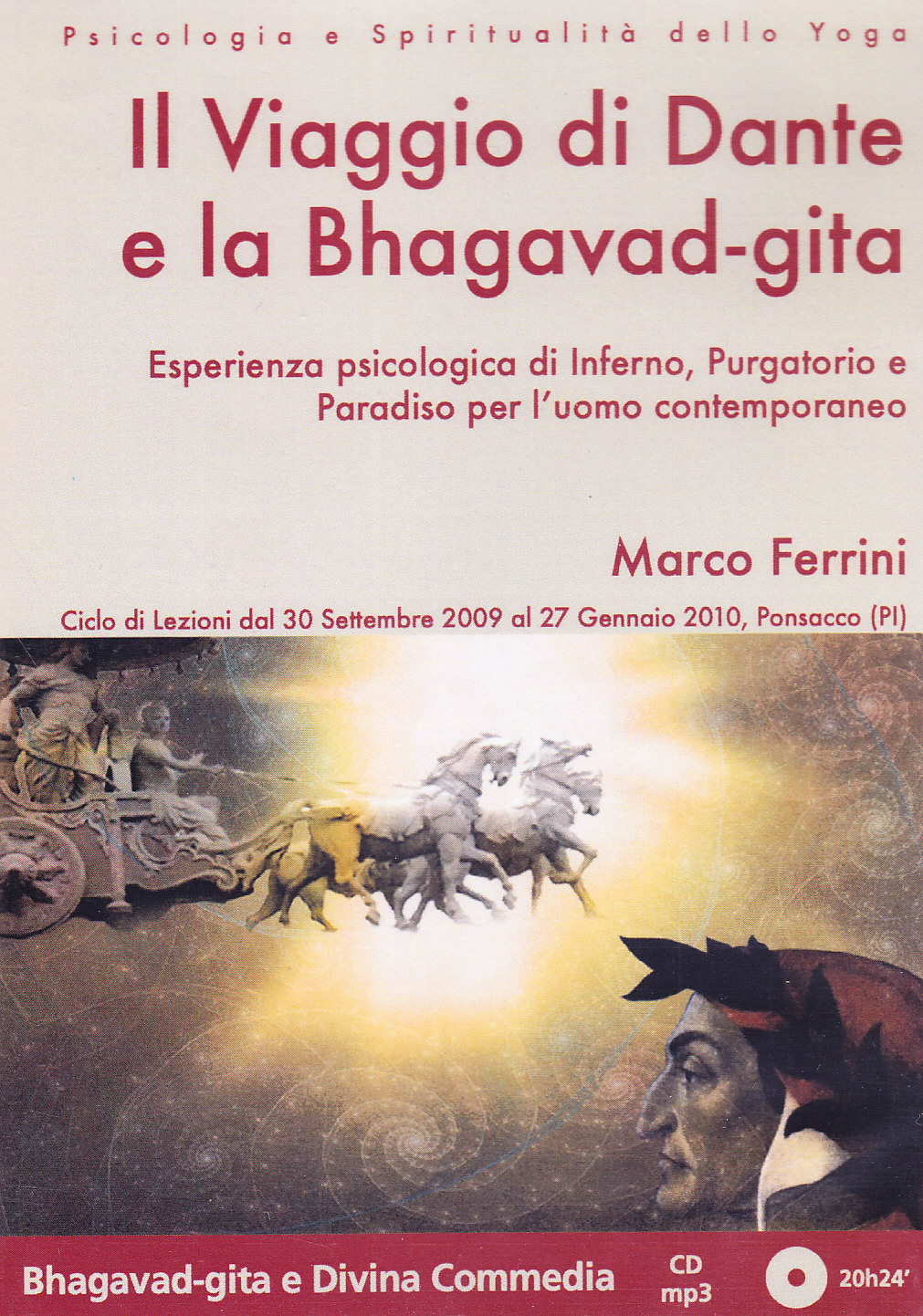 Se ci si dedica a pratiche evolutive, alla coltivazione di sapienza e virtù, si può rinascere a miglior vita nel qui ed ora, mentre si muore senza aver mai conosciuto la vita se si lasciano imperare le tendenze più degradanti della personalità. Alcune di queste sono state prese in esame attraverso suggestive letture e commenti di passi scelti dalla Commedia e dalla Gita. La lotta tra gli angeli di Michele e gli angeli ribelli capeggiati da Lucifero richiama la lotta tra i deva guidati da Indra e gli asura capeggiati da Vrita. Le tre belve che ostacolano il cammino di Dante allorché desidera salire al "bel colle" sono state paragonate alle tre porte dell'inferno descritte nella Gita: la cupidigia (kama: la lonza dalla "gaietta pelle"), la collera (krodha: il leone "con la testa alta" e "con rabbiosa fame") e l'avidità (lobha: la lupa che "dopo 'l pasto ha più fame che pria"). Qui di seguito alcuni dei personaggi della Commedia che sono stati analizzati in una prospettiva di dialogo tra la Gita e l'opera dantesca.