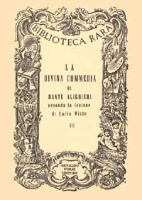 Commento dell'editore: Il Witte nella splendida edizione in 4° di Berlino diede tutte le varianti del suo studio critico. In questa edizione le varianti non ci sono, ma ciascun canto è adornato di antiche incisioni.