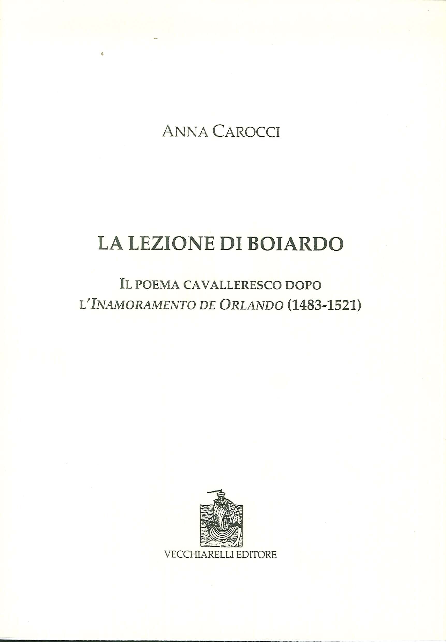 La Lezione di Boiardo. Il poema cavalleresco dopo l'Inamoramento de Orlando (1483-1521)