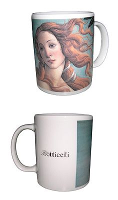 Tazza in ceramica con riproduzione de La nascita di Venere di Botticelli (particolare).