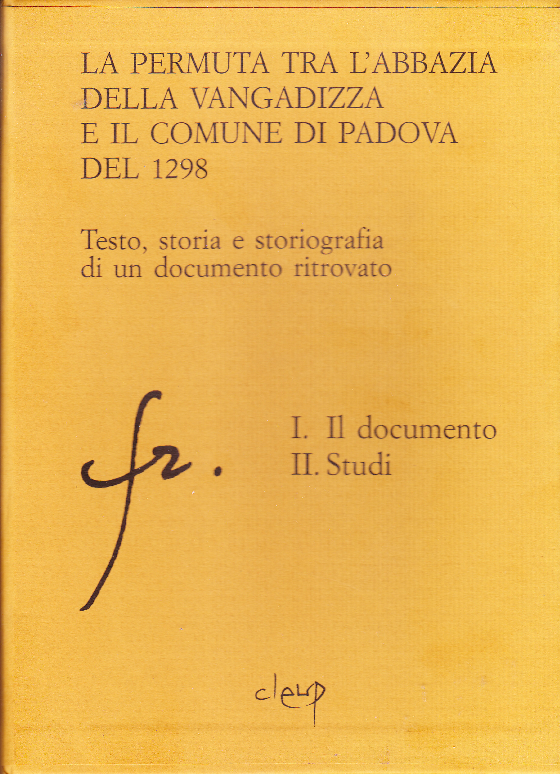Nel 1928 l'abbazia di S. Maria della Vangadizza e il Comune di Padova stipularono un accordo, dopo qualche tempo di tensioni e pressioni. Padova otteneva in feudo la giurisdizione sui territori e uomini dell'abbazia, così 'conquistando' un tratto importante dell'Adige verso Verona e Ferrara; in cambio la Vangadizza riceveva il bosco di Rubano e altre proprietà nel territorio padovano. Il lungo documento della permuta, nel 1990 recuperato da Luciano Maragna nell'archivio di Stato di Bologna, è del massimo interesse: ne riceve un miglioramento sensibile la conoscenza del profilo politico di Padova alla fine del Duecento; il lessico 'feudale' impiegato è di estrema precisione e sapienza; i territori oggetto della transazione sono descritti particolarmente, in misura tale da consentire un'eccellente ricostruzione dei rispettivi assetti. Il doppio volume offre i risultati della 'lettura' di quel testo condotta da studiosi della storia politica, del territorio, della documentazione.