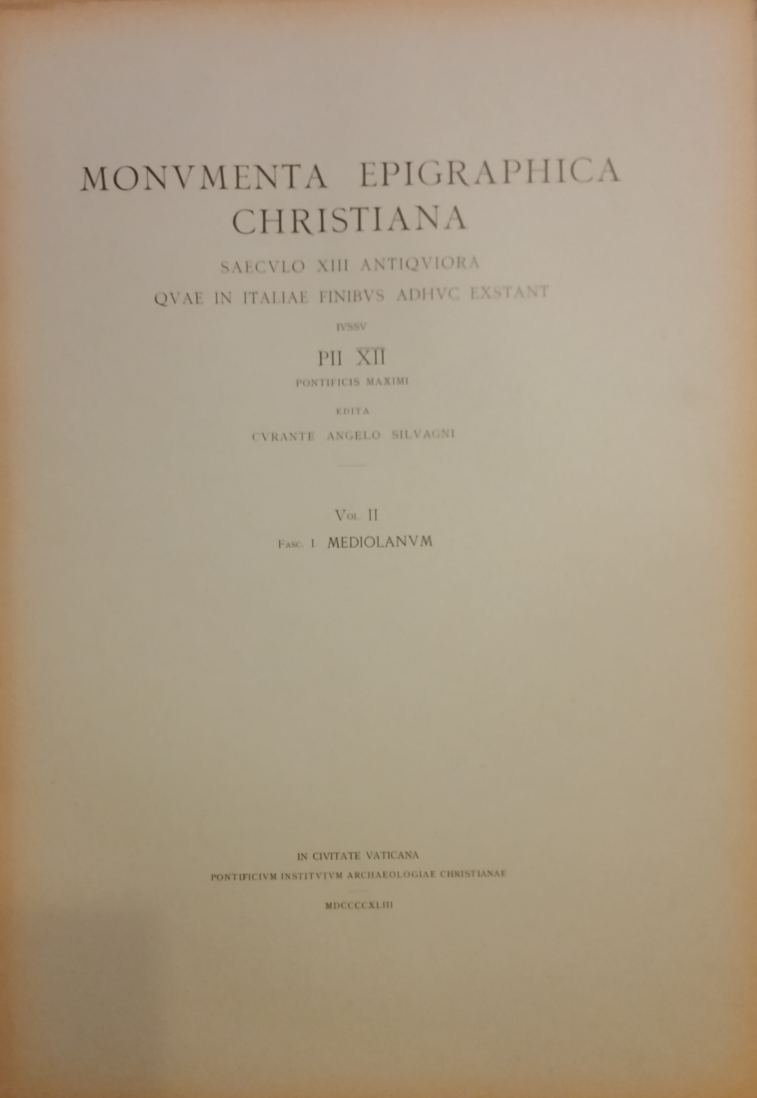 L'opera contiene la documentazione fotografica delle iscrizioni cristiane del Medio Evo in alcune città italiane. Essa pone a disposizione degli studiosi di storia e di paleografia medievale iscrizioni disperse in varie regioni italiane. In questo fascicolo: Milano
