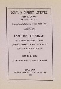 Volgarizzamento delle antiche vitarelle dei trovatori scritte già in lingua d'oc da Ugo di S. Ciro, da Michele della Torre e da altri.