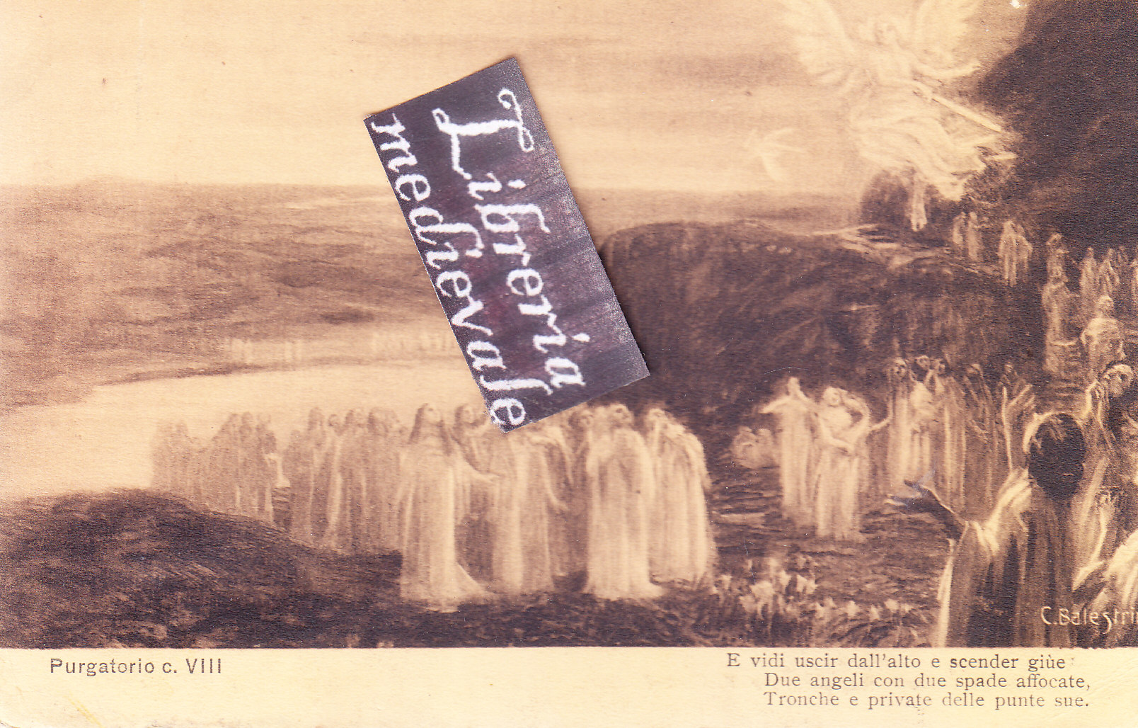 TITOLO/DENOMINAZIONE: Purgatorio, c. VIII. E vidi uscir dall'alto e scender giùe Due angeli con due spade affocate, Tronche e private delle punte sue - CARTOLINA