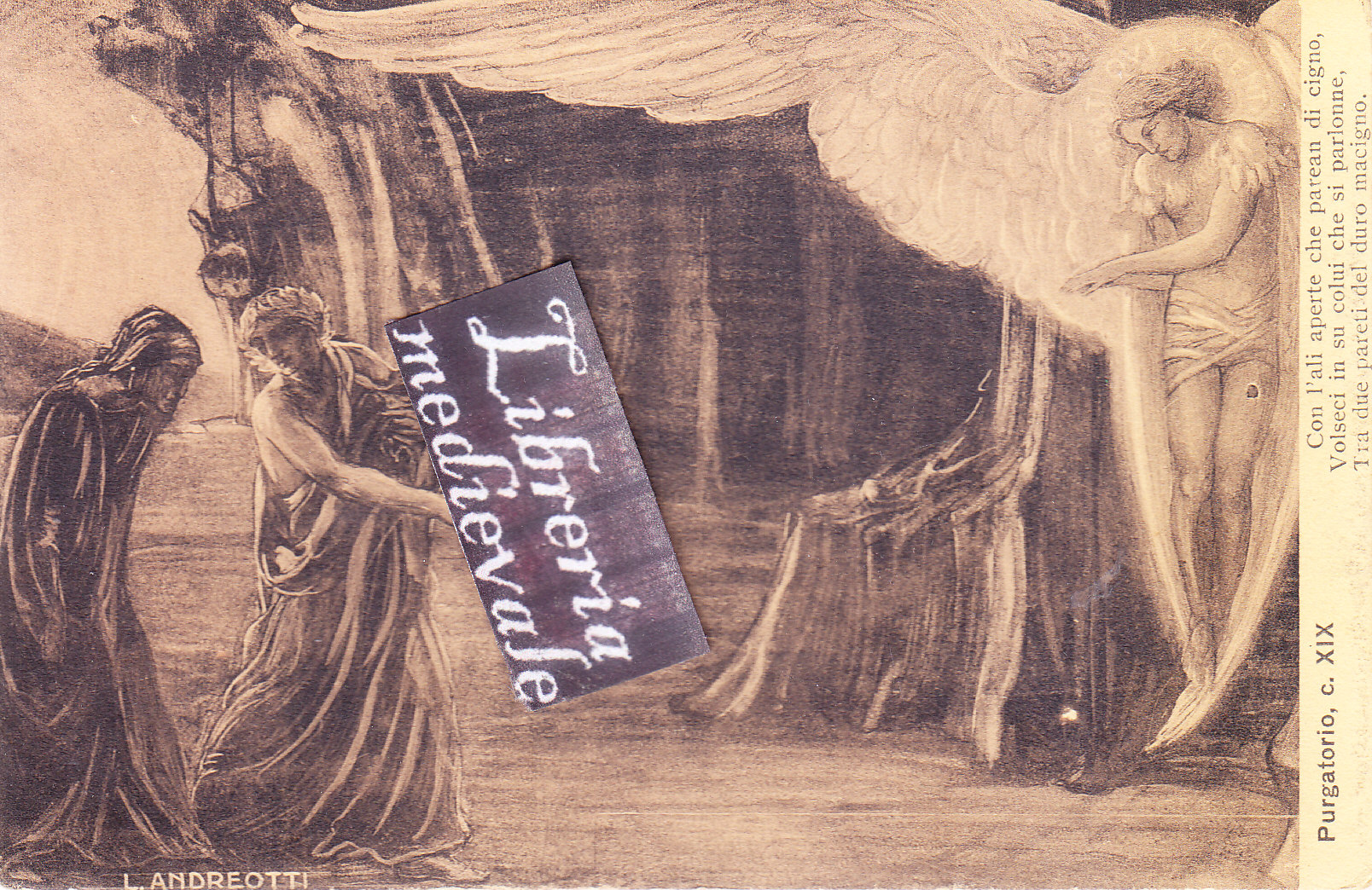 Purgatorio, c. XIX. Con l'ali aperte che parean di cigno, Volseci in su colui che si parlonne, Tra due pareti del duro macigno - CARTOLINA