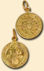 Medaglia San Benedetto in alluminio color oro, diametro cm 2,1