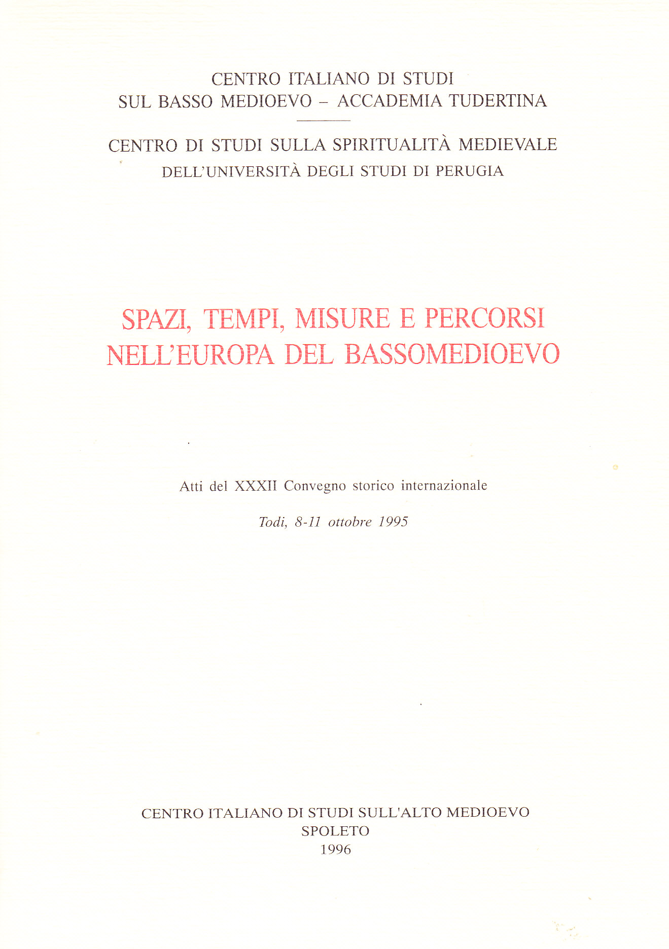Atti del XXXII Convegno storico internazionale (Todi, 8-11 ottobre 1995)