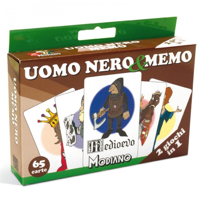 Una novità per stimolare i bimbi più attenti e curiosi. Solo la bravura e l'ingegno dei giocatori sapranno aiutarli nei giusti abbinamenti. 2 Giochi in 1: Uomo Nero e Memo (MEDIOEVO).